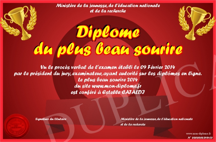 Envoyez par email votre Diplôme du plus beau sourire personalisé