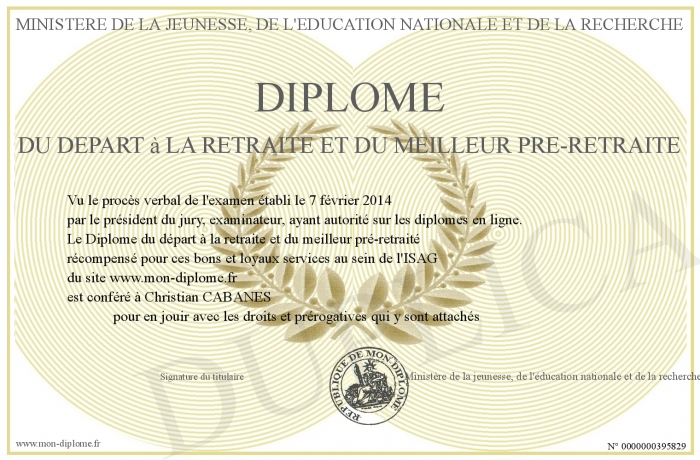 Envoyez par email votre Diplôme du départ à la retraite et du meilleur pré-retraité personalisé