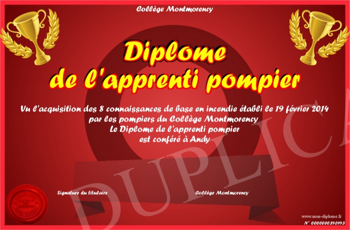 Envoyez par email votre Diplôme de l'apprenti pompier personalisé