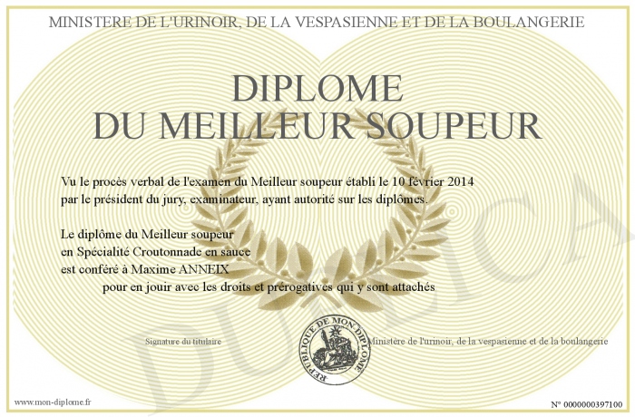 Envoyez par email votre Diplôme du meilleur soupeur personalisé