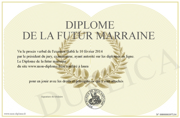 Envoyez par email votre Diplôme de la futur marraine personalisé