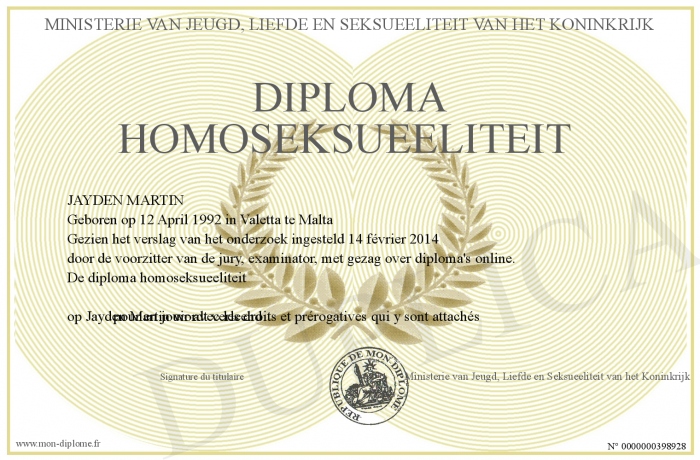 Envoyez par email votre diploma homoseksueeliteit personalisé