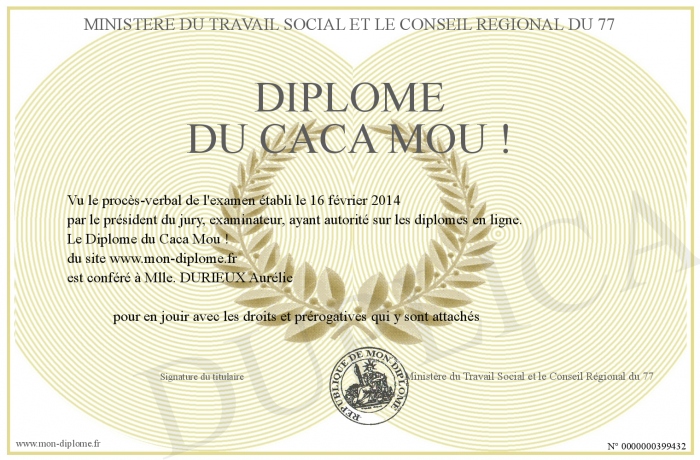 Envoyez par email votre Diplôme du Caca Mou ! personalisé