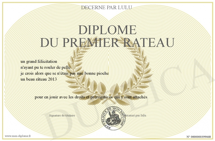 Envoyez par email votre Diplôme du premier rateau personalisé