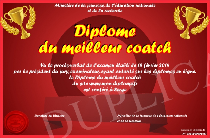 Envoyez par email votre Diplôme du meilleur coatch personalisé