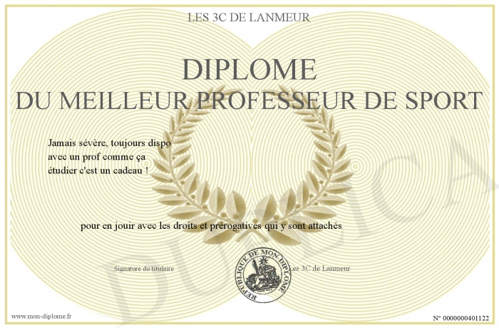 Envoyez par email votre Diplôme du meilleur professeur de sport personalisé