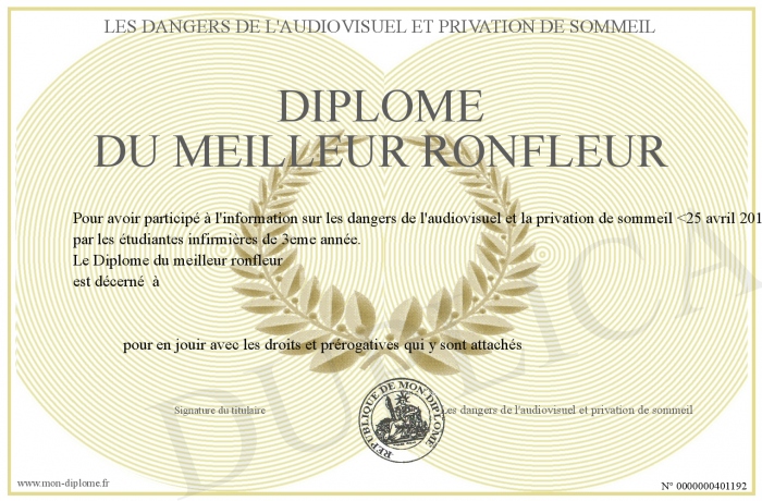 Envoyez par email votre Diplôme du meilleur ronfleur personalisé