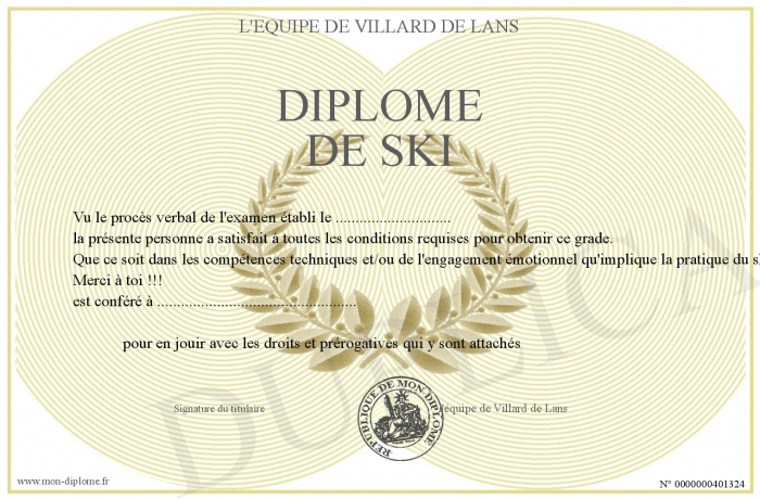 Envoyez par email votre Diplôme de Ski personalisé