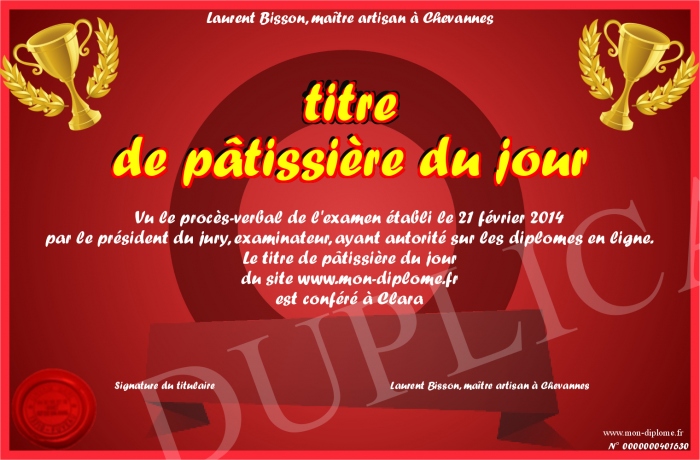 Envoyez par email votre titre de pâtissière du jour personalisé