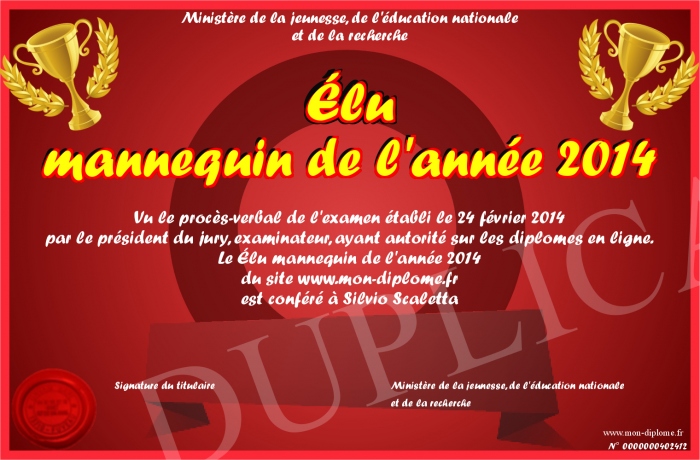 Envoyez par email votre Élu mannequin de l'année 2014 personalisé