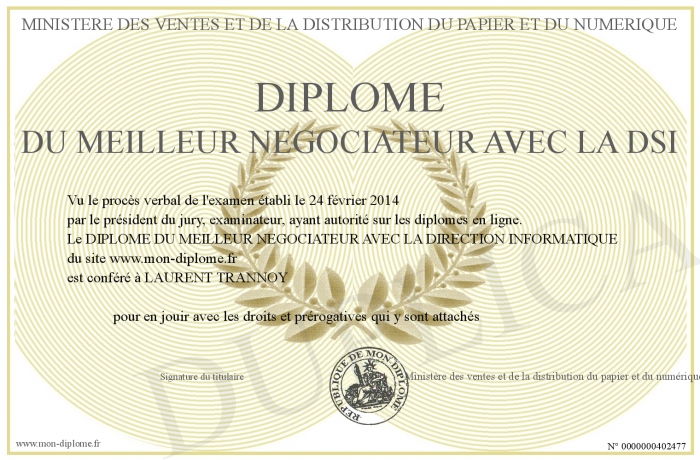 Envoyez par email votre Diplôme du meilleur négociateur avec la DSI personalisé