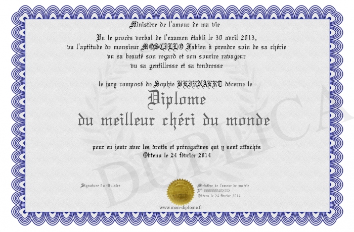Envoyez par email votre Diplôme du meilleur chéri du monde personalisé