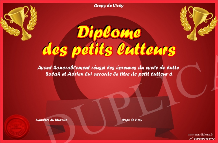 Envoyez par email votre Diplôme des petits lutteurs personalisé