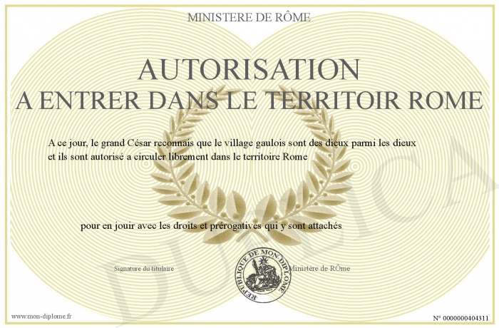 Envoyez par email votre Autorisation a entrer dans le territoir rôme personalisé