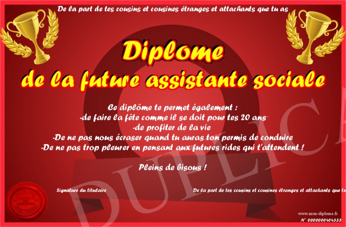 Envoyez par email votre Diplôme de la future assistante sociale personalisé