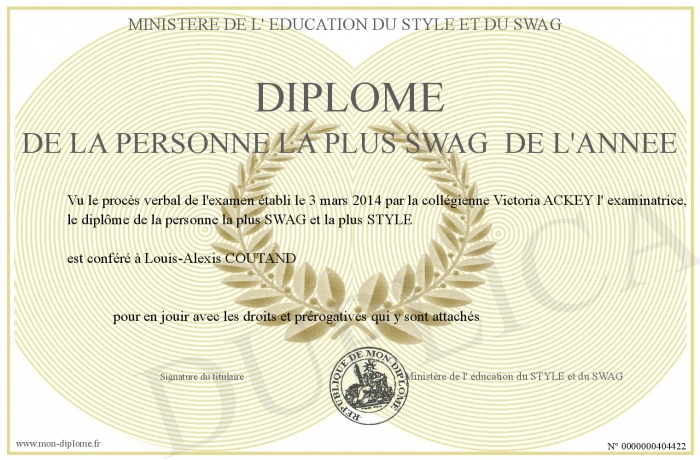 Envoyez par email votre Diplôme de la personne la plus SWAG de l'année personalisé
