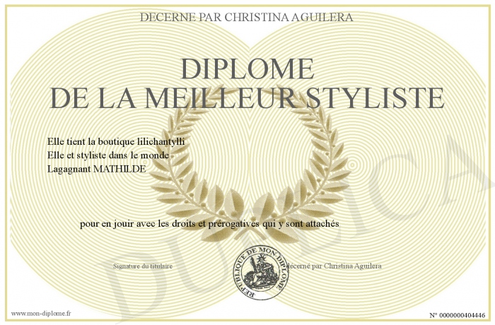 Envoyez par email votre Diplôme de la meilleur styliste personalisé