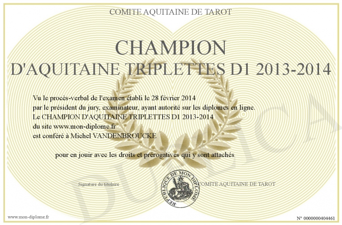 Envoyez par email votre CHAMPION D'AQUITAINE TRIPLETTES D1 2013-2014 personalisé