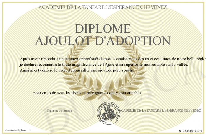 Envoyez par email votre DIPLOME AJOULOT D'ADOPTION personalisé