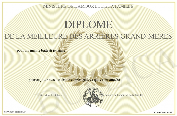 Envoyez par email votre Diplôme de la meilleure des arrieres grand-meres personalisé