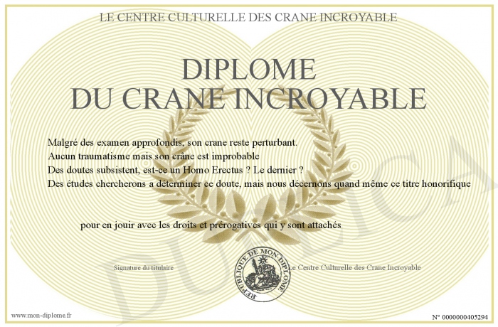 Envoyez par email votre Diplôme du Crane INCROYABLE personalisé