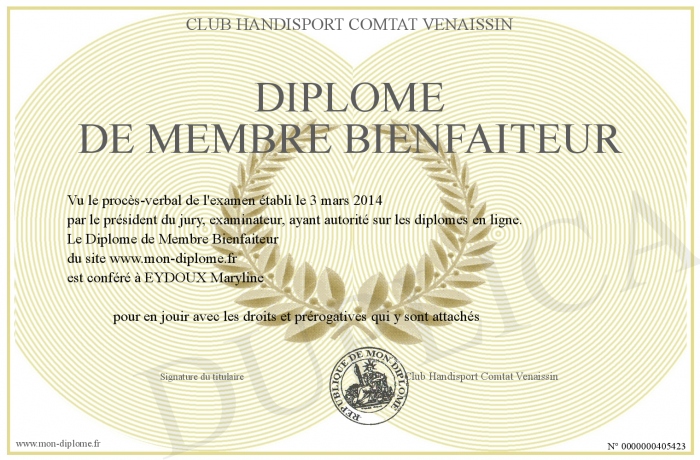 Envoyez par email votre Diplôme de Membre Bienfaiteur personalisé