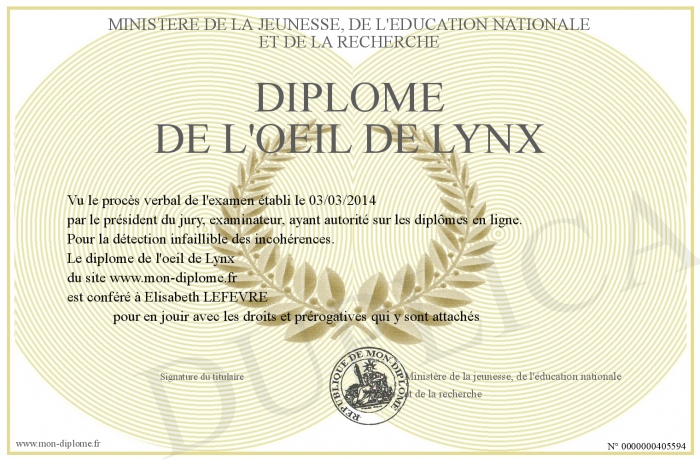 Envoyez par email votre Diplôme de l'oeil de Lynx personalisé