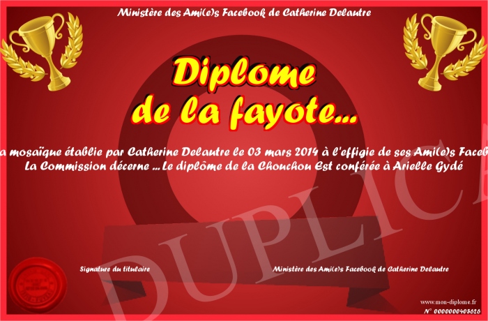Envoyez par email votre Diplôme de la fayote... personalisé