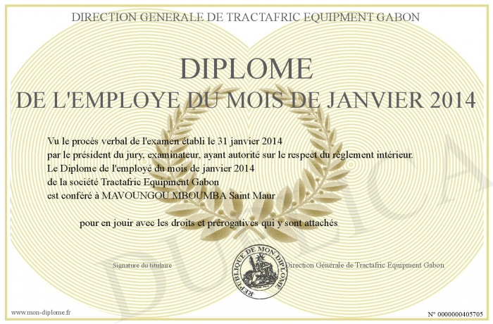 Envoyez par email votre Diplôme de l'employé du mois de janvier 2014 personalisé