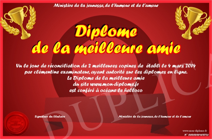 Envoyez par email votre Diplôme de la meilleure amie personalisé