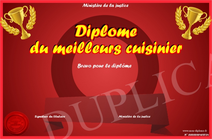Envoyez par email votre Diplôme du meilleurs cuisinier personalisé