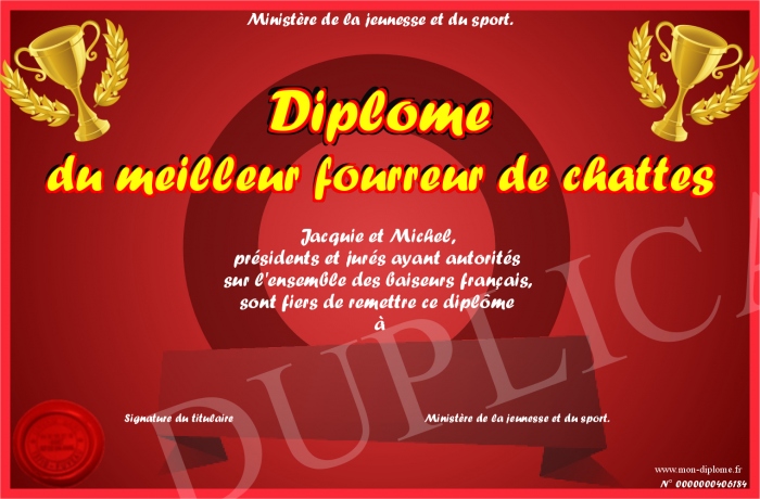 • Diplôme du meilleur fourreur de chattes