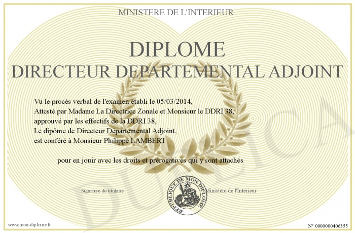 Envoyez par email votre Diplôme Directeur Départemental Adjoint personalisé