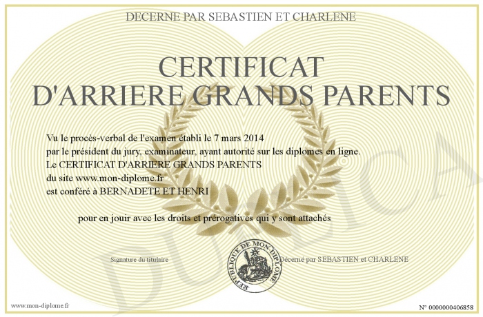 Envoyez par email votre CERTIFICAT D'ARRIERE GRANDS PARENTS personalisé