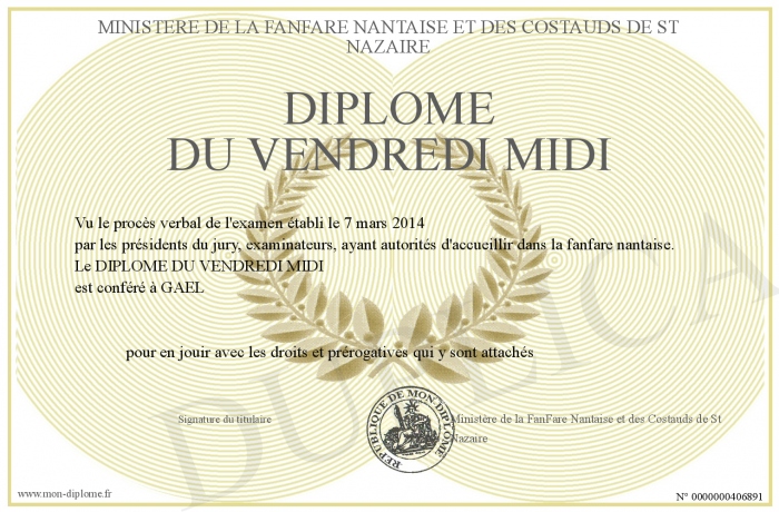 Envoyez par email votre DIPLOME DU VENDREDI MIDI personalisé