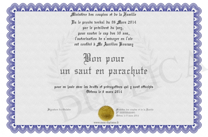 Envoyez par email votre Bon pour un saut en parachute personalisé