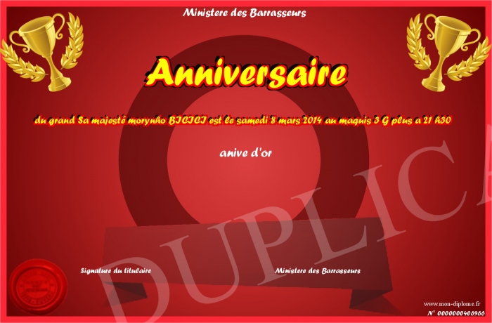 Envoyez par email votre Anniversaire du grand Sa majesté morynho BICICI est le samedi 8 mars 2014 au maquis 3 G plus a 21 h30 personalisé