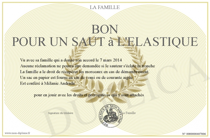 Envoyez par email votre Bon pour un saut à l'élastique personalisé