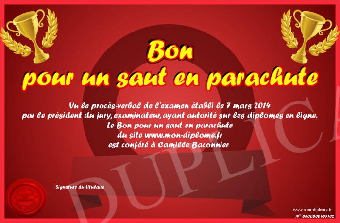Envoyez par email votre Bon pour un saut en parachute personalisé