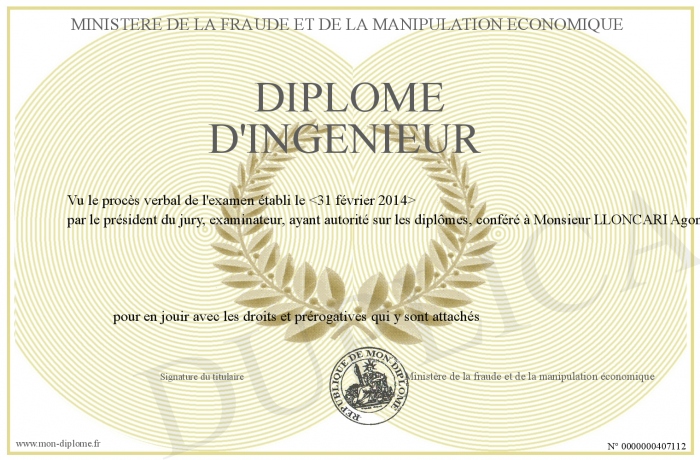 Envoyez par email votre Diplôme d'Ingénieur personalisé