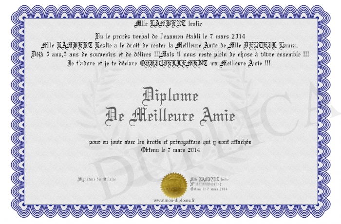 Envoyez par email votre Diplome De Meilleure Amie personalisé