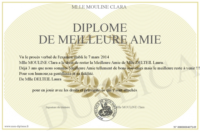 Envoyez par email votre Diplôme de Meilleure Amie personalisé