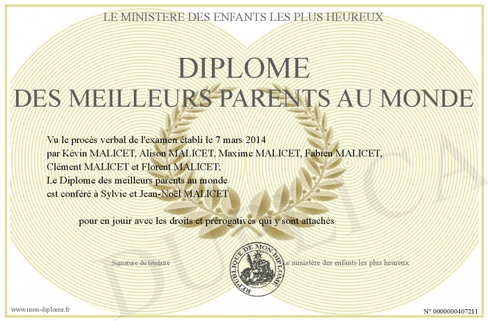 Envoyez par email votre Diplôme des meilleurs parents au monde personalisé