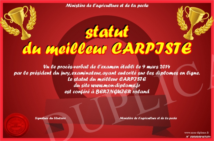 Envoyez par email votre statut du meilleur CARPISTE personalisé