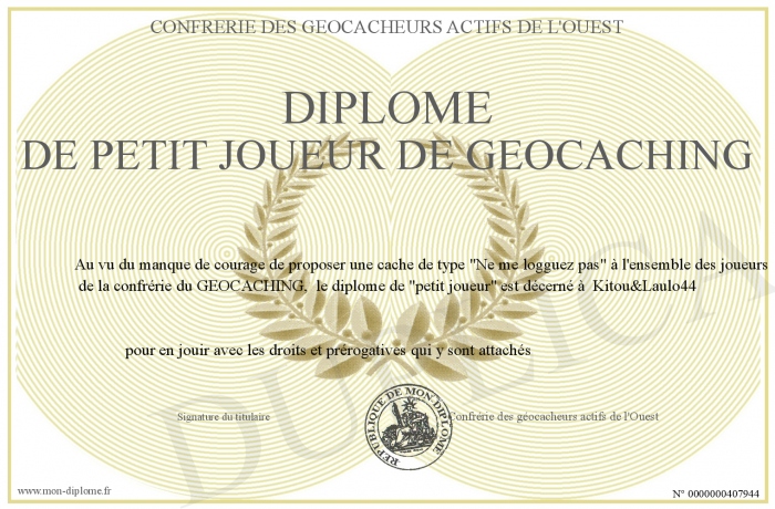 Envoyez par email votre Diplôme de petit joueur de Géocaching personalisé