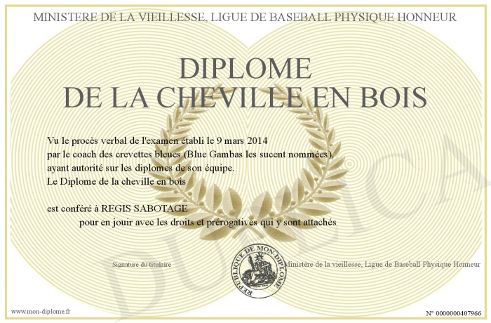 Envoyez par email votre Diplôme de la cheville en bois personalisé
