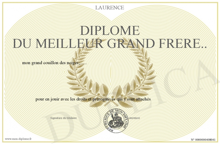 Envoyez par email votre Diplôme du meilleur grand frère.. personalisé