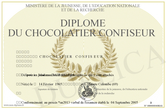Envoyez par email votre Diplôme du Chocolatier Confiseur personalisé