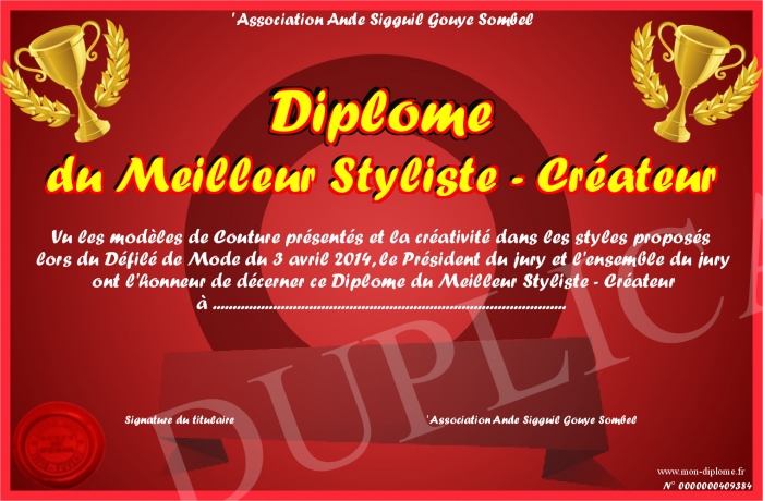 Envoyez par email votre Diplôme du Meilleur Styliste - Créateur personalisé