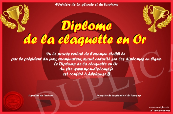 Envoyez par email votre Diplôme de la claquette en Or personalisé
